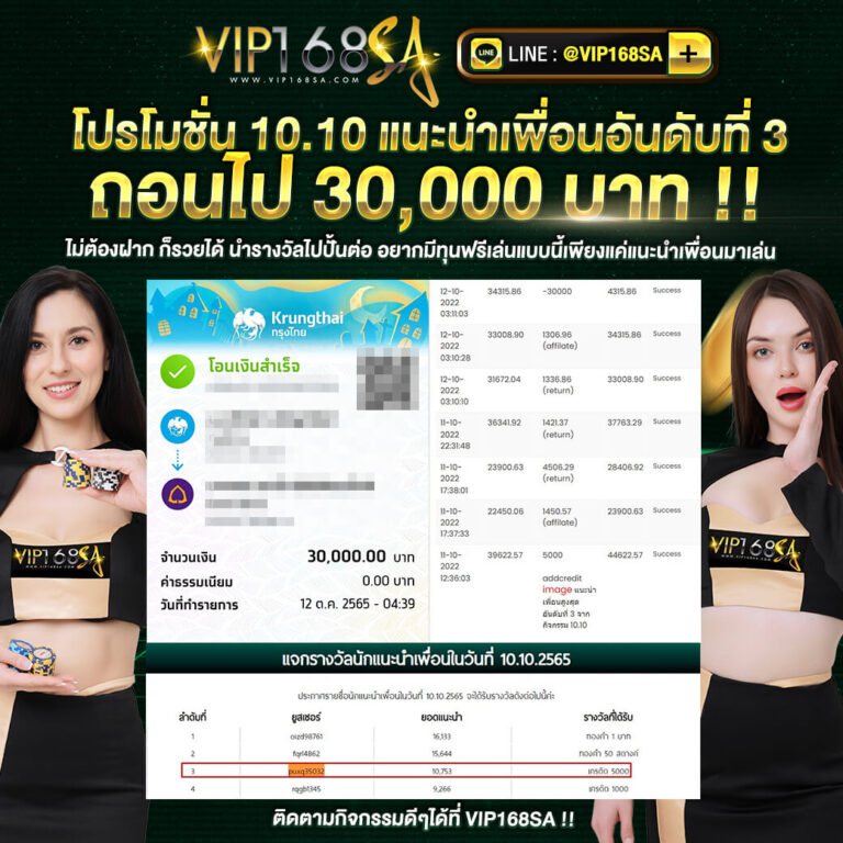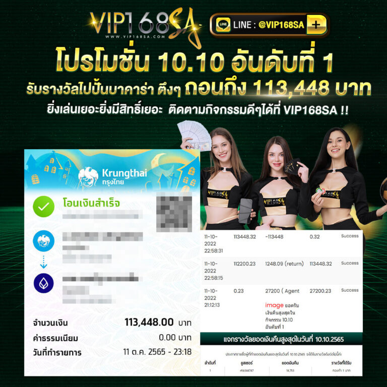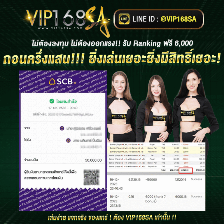 ในยุคที่การเดิมพันออนไลน์กลายเป็นหนึ่งในความบันเทิงยอดนิยม การเลือก เว็บคาสิโนออนไลน์ที่เชื่อถือได้ ถือเป็นสิ่งสำคัญ และหนึ่งในตัวเลือกที่ดีที่สุดที่นักเดิมพันทั่วเอเชียต่างยกให้เป็นอันดับต้น ๆ ก็คือ VIP168SA เว็บตรงไม่ผ่านเอเย่นต์ที่มาพร้อมระบบ AUTO ที่รวดเร็วที่สุด ตอบโจทย์ทุกความต้องการของผู้เล่นทั้งด้านความสะดวก ความปลอดภัย และความครบวงจรในที่เดียว
