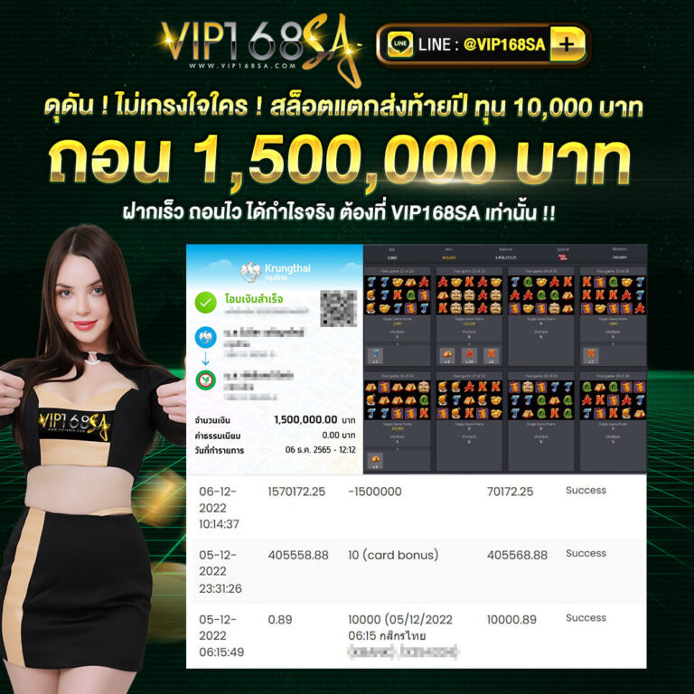 VIP168SA เป็น เว็บตรงไม่ผ่านเอเย่นต์ ที่มีความน่าเชื่อถือสูง ทุกการเดิมพันของคุณมั่นใจได้ว่าจะได้รับความยุติธรรมและความปลอดภัยแบบ 100% จุดเด่นสำคัญคือระบบ ฝาก-ถอนออโต้ ที่รวดเร็วภายในไม่กี่วินาที ทำให้ผู้เล่นไม่ต้องรอนาน และยังรองรับทุกธนาคารชั้นนำในประเทศไทย เว็บไซต์นี้รวมเกมเดิมพันออนไลน์ทุกประเภทไว้ในที่เดียว ไม่ว่าจะเป็น บาคาร่าออนไลน์ สล็อตแตกง่าย คาสิโนสด แทงบอล และเกมพนันยอดนิยมอีกมากมาย ซึ่งทั้งหมดมาจากค่ายเกมชั้นนำระดับโลกที่การันตีคุณภาพ ทั้งความสนุก ความตื่นเต้น และโอกาสในการทำกำไรจริง