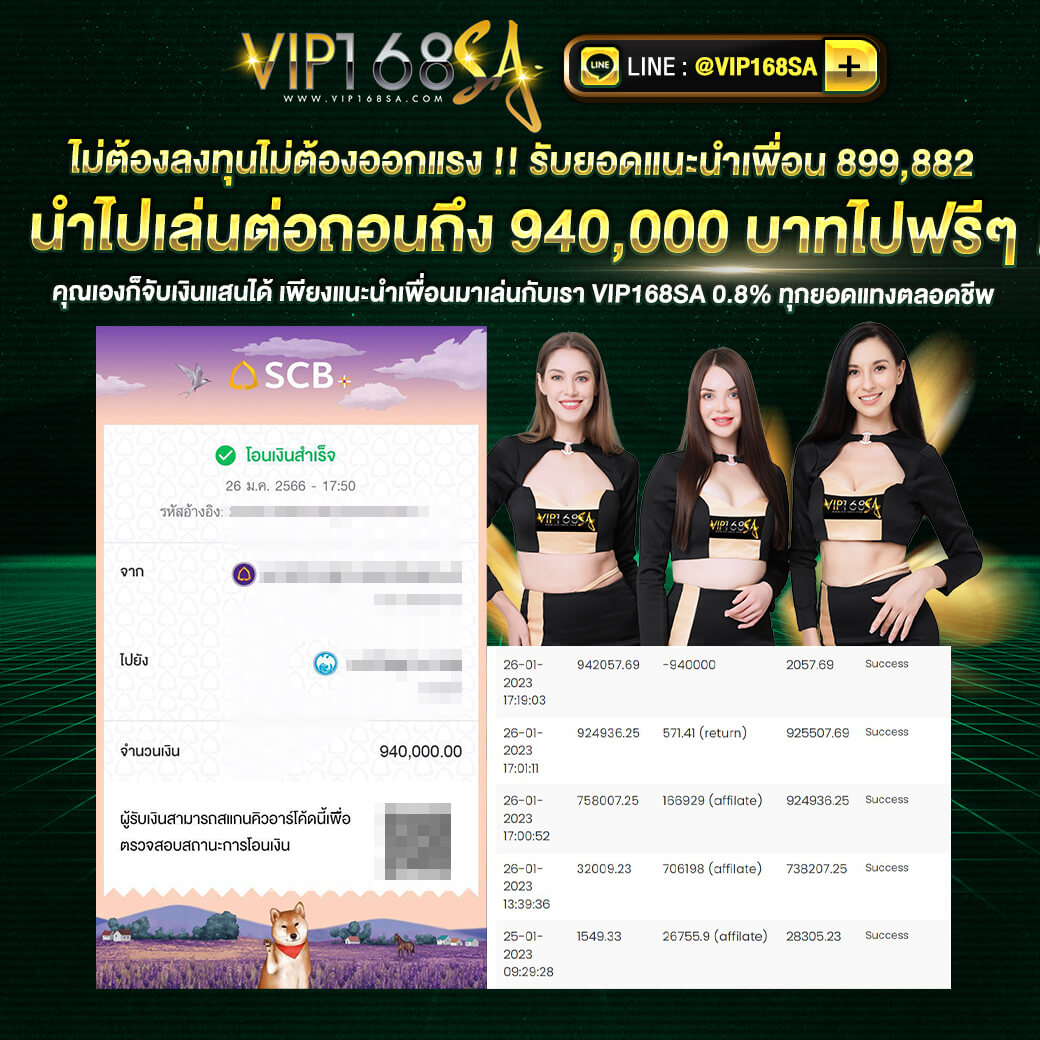 นอกจากความครบวงจรแล้ว VIP168SA ยังเอาใจสมาชิกด้วยโปรโมชั่นสุดคุ้ม ทั้งโบนัสต้อนรับ เครดิตฟรี และกิจกรรมแจกของรางวัล ที่ช่วยเพิ่มความสนุกและโอกาสในการทำกำไรได้มากยิ่งขึ้น ทุกคนที่เข้ามาเป็นสมาชิกจึงมั่นใจได้ว่าจะได้รับความคุ้มค่ามากกว่าที่เคยเจอจากเว็บอื่น